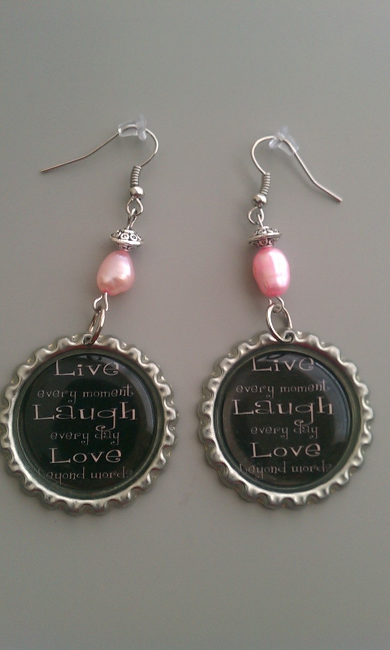 Handcrafted bottlecap earrings & other accessories to express your company logo, hobby, social awareness or even a fave sports team. Have a custom 'cap' in mind? Contact me! Caps are 1" & are brand new. Epoxy dome covered image creates dimension.