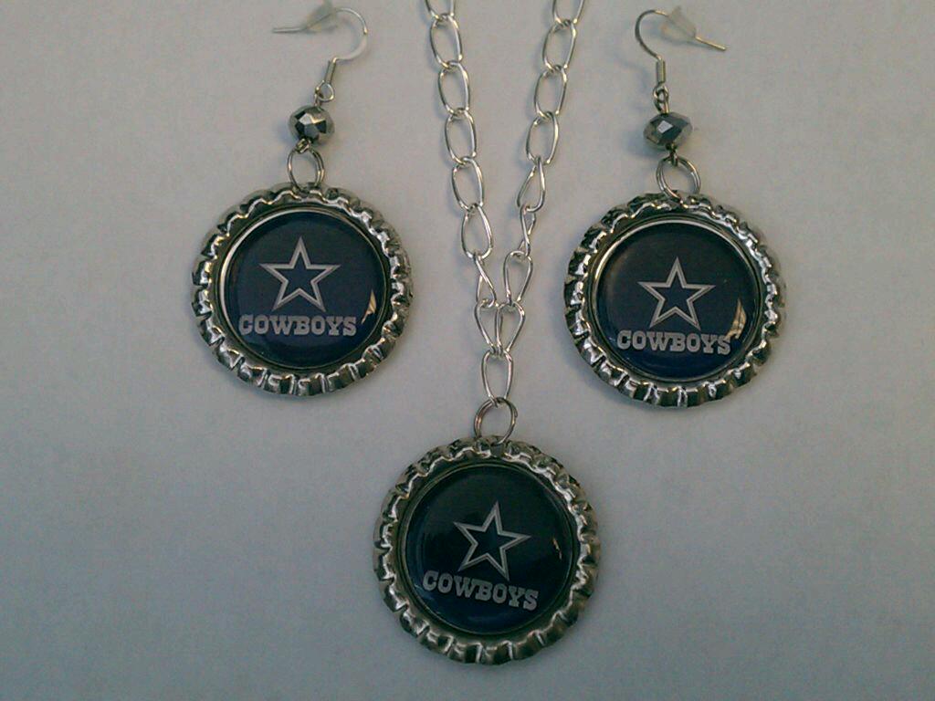 This earrings and necklace ensemble is great to express being a Cowbows fan! The link necklace length is customizable. Toggle clasp.